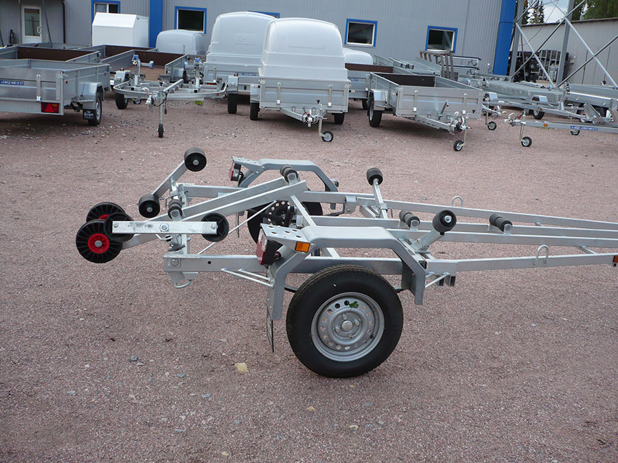 Прицеп для лодок и катеров V59L является одноосным. Следует помнить, что модель не предусматривает наличие тормозов (относится к серии легких лодочных прицепов без тормозов).