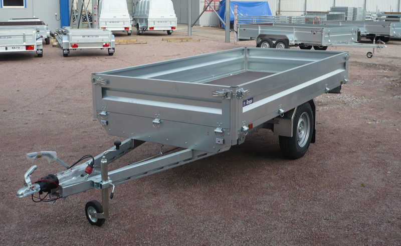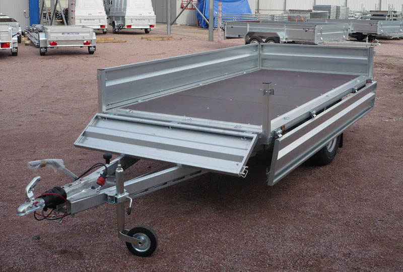 Прицеп-платформа P30T1 является одноосным, включает в себя тормозную систему наката и тормоз.В основе прицепа металлическая конструкция. Для быстрого доступа к грузу и упрощению операции погрузки-разгрузки прицеп оснащен откидными легкосъемными бортами.